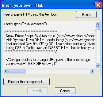 * Using CSB or Trellix: use an INSERT HTML box to hold your script and put your js and images into web components (webgem in Trellix). Then you MUST change each gEMDIR to GEMDIR before using code!