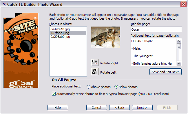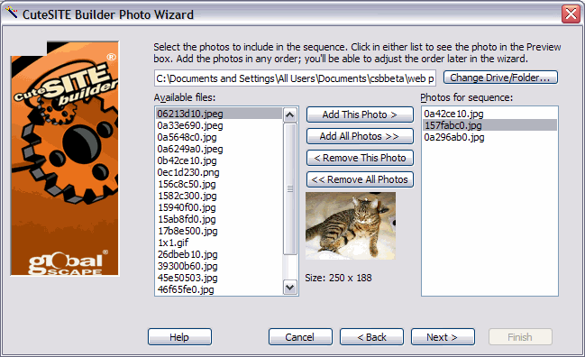 SCREEN SHOTS for PHOTO SEQUENCE WIZARD:
