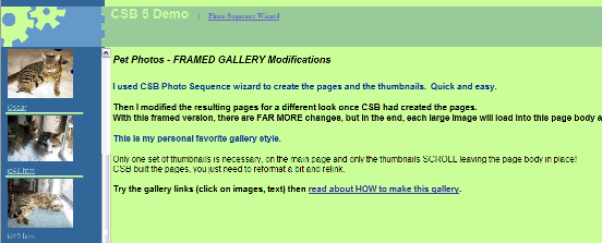 But you can use CSB to create your thumbnails and individual pages to create a FRAMED gallery.