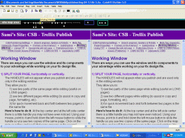 ![]() Here's how to do it: At the top center and at the left side center there is a little handle you may not have even noticed. Using your mouse, point to it and hold down the left mouse button to slide the handle so you see two copies of the same page. Click on the map or outline and poof! that page appears in the second window. You will have a separate scroll bar for each section of the window. The TOP EDGE of the frame that is ACTIVE will be a different color (demonstrated with the YELLOW bar in the images below). If you have a split window, your outline and map will show that you have 2 yellow boxes!