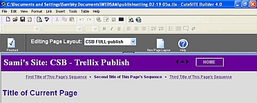 3) On the page area within the Page Layout Editor, enter or modify all the elements that you want to include on this page layout. This is where you insert your header image, where you set your text color for the borders and body of the page, etc. All the normal CSB features are available, including inserting and removing link lists.